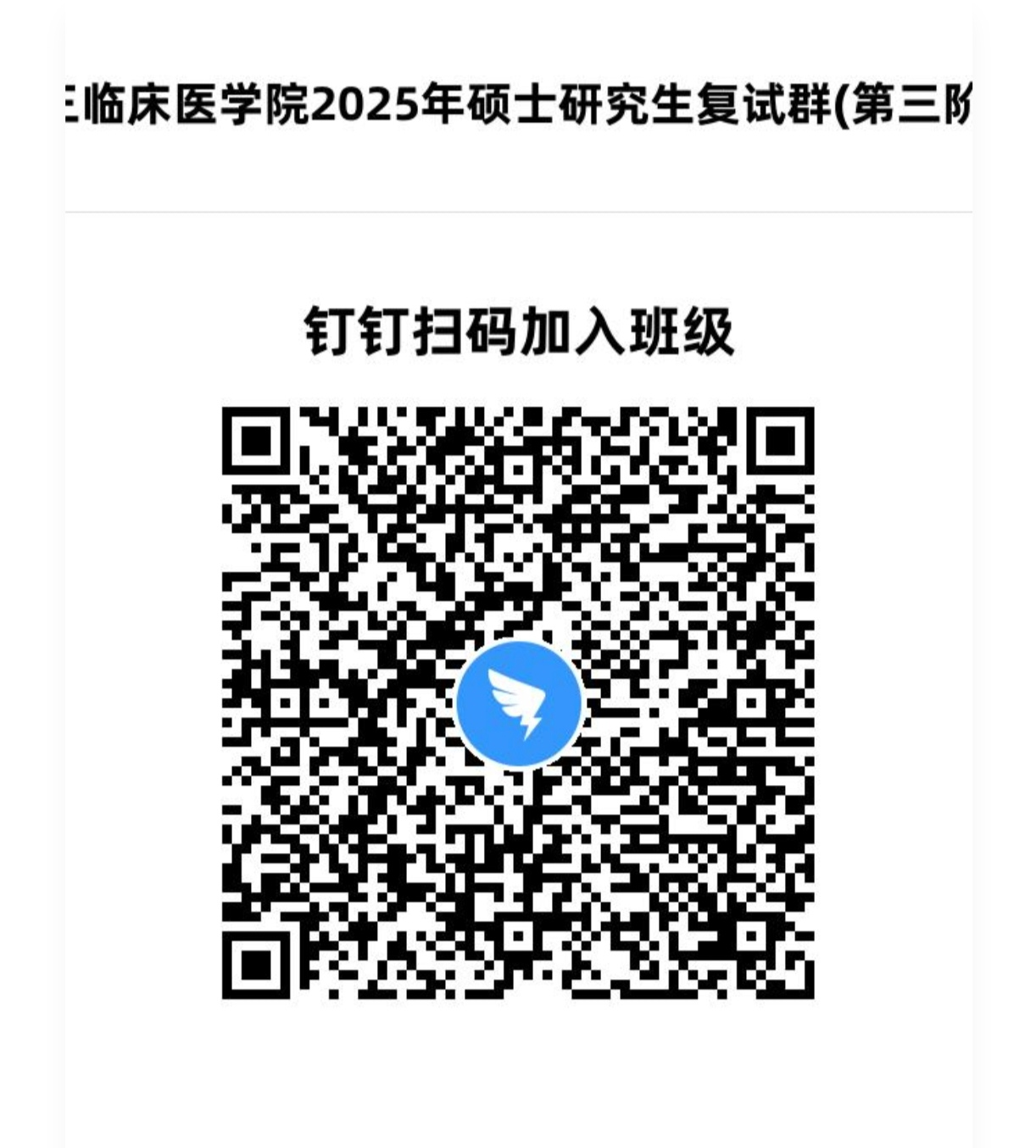 2.请符合入群资格条件的考生,及时扫码加入招生复试钉钉群“2025年广中医三院硕士招生复试群(第三阶段)”,确保每位考生都能接收到相关信息,谢谢各位考生的配合。