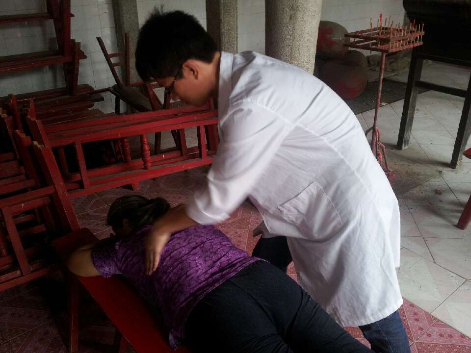 团委副书记赵伟全等领导巡视了现场后,首先向活动负责人林勇凯、林焕腾和郭绵乐同学询问了此次活动开展的相关情况,并充分肯定了广州中医药大学潮阳潮南同乡会同学贯彻团省委三下乡“我的中国梦 医疗卫生”实践服务团活动的精神,大力赞扬参加此次活动全体同学不怕苦,不怕累的志愿服务精神、鼓励同学们将所学习的知识运用于实践。赵副书记表示区团委十分支持此类活动,将继续提供精神和物质上的支持,并希望潮阳潮南同乡会能再接再励,把三下乡活动继续传承下去,做到覆盖面更广,服务人群更多,服务手段更丰富,不断扩大规模和影响力。领导们还现场体验了拔火罐、艾灸、推拿按摩等多种传统中医理疗方法,赵副书记的颈椎肌肉劳损在林焕腾队员的手法理疗下,疼痛僵硬等不适感明显减轻。此外,莅临的相关领导及前来接受服务的群众一同聆听了一次由林勇凯队长讲述的关于日常保健知识的小讲座。听众纷纷表示受益匪浅,提高了自我保健意识,学会了如何在忙碌的工作之余保养自己的身体。