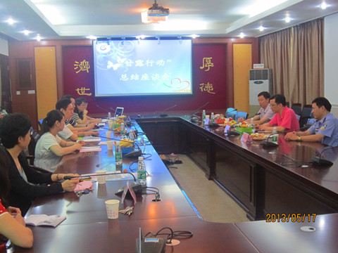 座谈会上,首先由三院志愿服务队队长简焕玲同学就活动开展的背景、近几年活动开展的情况、活动所取得成效与活动的反思和展望这四个方面,对“甘露行动”进行了工作的总结汇报。随后,三院江书记、校团委范书记和省未管所胡主任、李院长等同志发表讲话。大家共同探讨了活动开展的经费支持、志愿者和学员们个人信息隐私保护的重要性、如何增强活动的灵活性和多样性、针对性帮教扶持个别学员、加强监区与高校的沟通交流等方面进行交流。座谈会上,大家对继续把“甘露行动”作为一项学生志愿服务活动品牌,增强社会影响力,加强学校与劳管所的合作交流等多项内容达成共识。整个座谈会气氛热烈融洽,彼此交换了对于活动长期持续开展的意见和建议,这对日后工作起到重要作用。在座谈会的最后,未管所向我校授予一面写着“甘露育新蕾,润物细无声”的锦旗,感谢我校多年来对该项目活动的努力,希望学生志愿者们继续发扬志愿服务精神,做好志愿帮教服务。