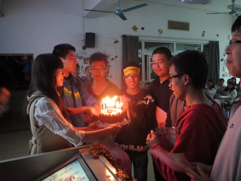 在穿插的游戏环节中,同学们在轻松友爱的氛围中加深了对彼此的认识,展现了12级同学的团结与激情。而最后一个“抽奖”环节将整场主题班会推向了高潮,所有同学都怀着无比激动的心情为“中奖”的四月份生日同学送上了生日蛋糕和生日祝福,在温馨美好的庆生环节中同学们不约而同的唱起了生日歌。