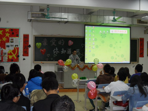 晚上7时,主题班会在全体班委带领大家合唱班歌中拉开序幕。此次主题班会主要分为三个环节:分享环节、游戏环节和“抽奖”环节。在分享环节中,由班里的12位性格、经历各异的同学上台分享他们的故事,他们有的分享了求职的经历;有的讲述了自己对幸福的感悟;有的分享了读书的体会,并告诉同学们从现在开始要珍惜时间;有的则通过故事告诉大家要学会感恩;有的分享了同学之间的珍贵友谊等。在他们的故事中,看到了幽默、看到了乐观、看到了积极向上,赢得了台下一阵阵热烈的掌声。