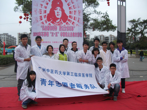 2013年3月3号学习雷锋精神50周年,3月份是广东省“学雷锋全民志愿服务行动月”。我院青年志愿者服务队积极行动,参加番禺石基镇团委、番禺义工联联合举办的“三.五”学雷锋义务集市活动。我院共15名学生志愿者前往石碁镇文化广场,为群众提供健康咨询、文化宣传的等服务活动。