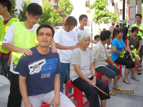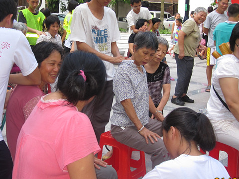 上午九点,活动正式开始。活动分为健康咨询和游园娱乐两部分。志愿者们为群众量血压、拔火罐、推拿、艾灸等。尽管天气酷热,志愿者们已满头大汗,仍耐心地为群众热情服务,解答疑难,宣传医疗保健知识。在游园活动区,志愿者精心设计了丰富多彩的小活动,例如:折纸花,扔圈圈,拼图,踩气球等。场面十分热闹,小朋友和家长们玩得兴高采烈,营造了和谐的亲子同乐氛围。此外,志愿者们还对市民们进行了健康知识宣讲以及问卷调查,目的是进一步加深民众的健康知识教育,为日后开展社区医疗服务提供参考。活动得到了当地群众以及主办方的一致好评。