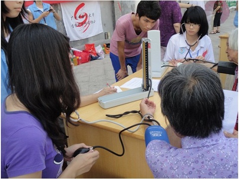 在当地南区社区妇女之家的协助下,我们在南门唐广场举行了中医健康咨询会。志愿者们为群众开展量血压、艾灸、拔火罐和推拿等服务。尽管天气酷热难耐,但却热不过志愿者们为群众服务的热情。此外,志愿者们还对群众进行了中医保健知识宣讲以及问卷调查,目的是进一步加深民众的健康知识教育,为以后实践活动提供参考。活动得到了群众的热情参与并收到了一致好评。