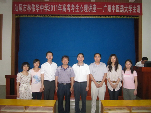 4月27日,在伟德bv1946官网党委江钢辉副书记的带领下、心理教研室龚文进老师、养生教研室陈炜老师、伟德bv1946官网学工办朱穗鹰、罗晓韵、陆丹丹老师以及校学生处龚建文老师等一行7人赴我校优质生源基地——广东省汕尾市林伟华中学及汕尾中学举行招生宣讲活动。