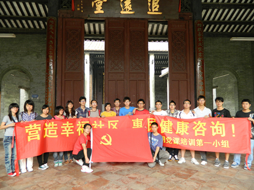 2011年4月16日早上8:30,我院第八期建党对象培训班第一小组十九名入党积极分子前往土华村,开始为期半天的党课实践活动。本次实践活动的目的是宣传健康知识、营造幸福社区。