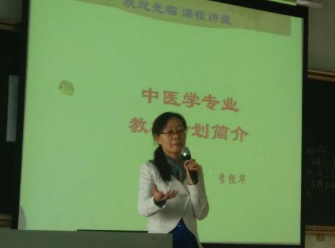 接下来李老师就中医学专业教学计划和职业规划两方面进行详细的解读。一开始,李老师亲切地邀请同学们发表入读大学以来在生活、学习、心理上的变化,在肯定了大家的热烈发言以后,点拨大学气氛是外松内紧,看似轻松,其实不然,在貌似自由的时间里压缩着许多自学任务。接着就中医学专业系列课程、大学教学管理模式、自主学习等进行探讨,强调大学生亟需学会自主学习的能力,要有学习的主动性、自觉性并要有科学的学习方法。中医基础课程要理解加背诵,好比打仗需要先掌握如何用枪,为以后学习如何射中靶心打下坚实的基础。四大经典著作是中医学宝库的核心内容,文简理奥,需反复诵读,理解透彻,才能掌握其要义,从心悟到临床应用。整个医学知识是理论指导临床,临床上升为理论,要打好基础,循序渐进,才能在中医学上有所作为。
