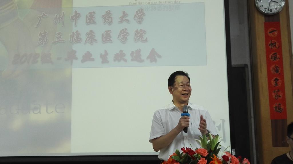 6月23日下午,我院2012级本科生毕业欢送会在三元里办公楼第四大课室隆重举行。学院院长谢华民教授、党委书记韩清民教授、党委副书记江钢辉教授以及党办、院办、教研室、教学办、学工办的老师们出席了欢送会。会议由江钢辉副书记主持。