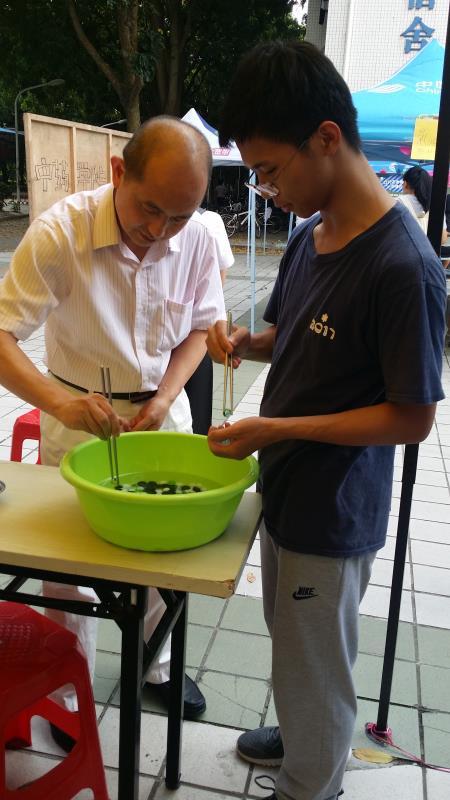 接下来,全体同学们进行了“5·25心理宣誓”。宣誓环节过后,开展了系列心理拓展游戏。第一个是纸杯传水。玩游戏的同学分作三组,用嘴咬住一个杯子并用咬住的杯子在队里一个接一个地传水,比试哪一组先传满一杯水。第二个是愿望纸飞机。同学们在纸上写出自己想要实现的小愿望并将纸折成飞机抛向空中,同学们随机捡起散落的飞机来看上面写的愿望并为之实现。第三个是背后留言。同学们都背后贴一张纸,并且互相写评价、寄语。韩书记在活动进行中时不时给予指导,提示主持人在游戏环节要给予正确的示范,并且在“背后留言”环节中为一名男生写下了祝福。