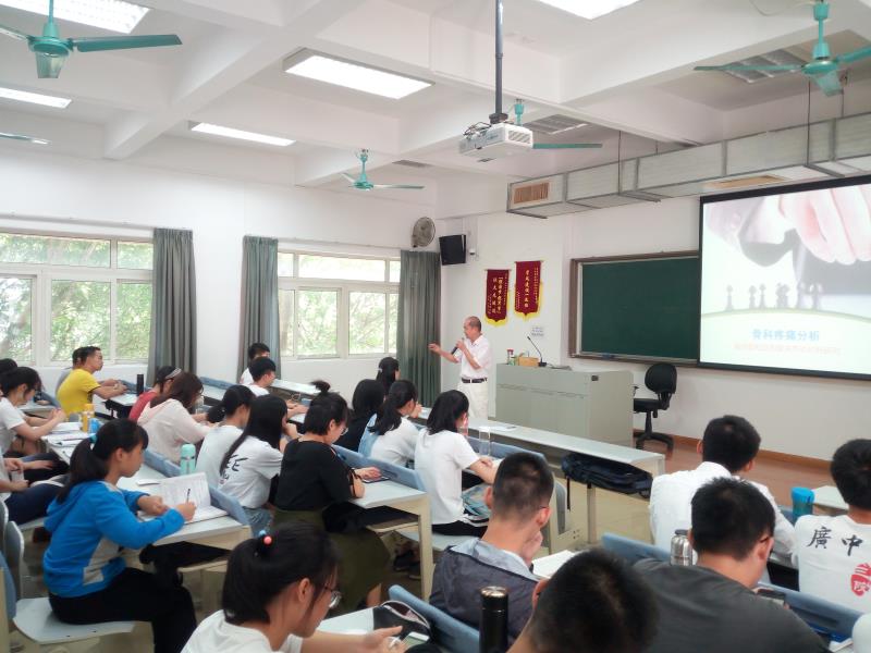 5月25日上午在课室楼B214,韩清民书记给我院2017级同学们作了《骨科疼痛分析》的专题讲座。