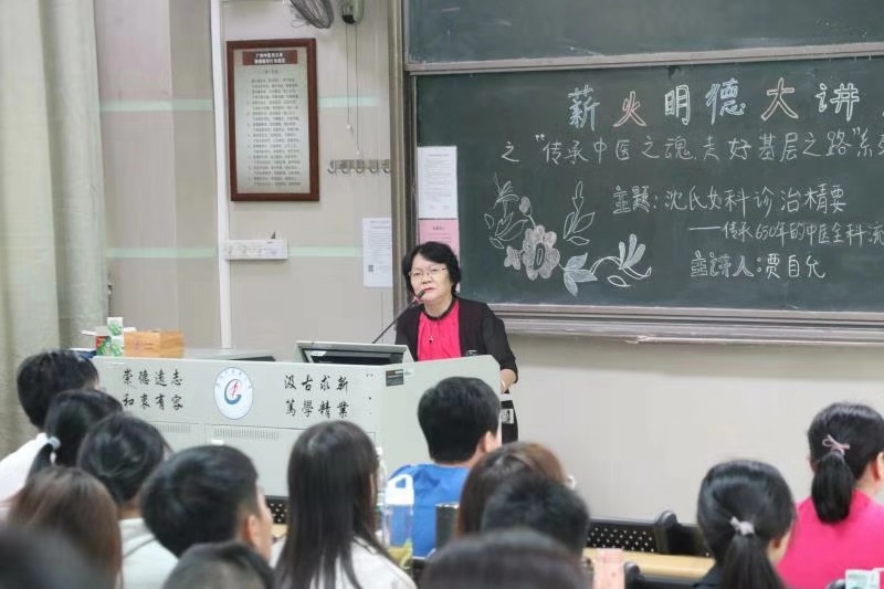 讲座上,贾老向大家介绍了沈氏女科的诊治精要,向大家介绍了该流派的“大医崇德,疗效至上”的理念,她回顾起一个个临床案例,鼓励年轻的学子们:“因为患者的生命都在我们手里,所以我们要拿出120%的努力,总会创造奇迹的”。现场掌声经久不息。