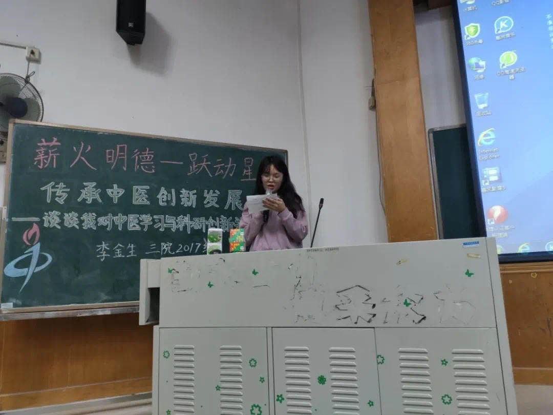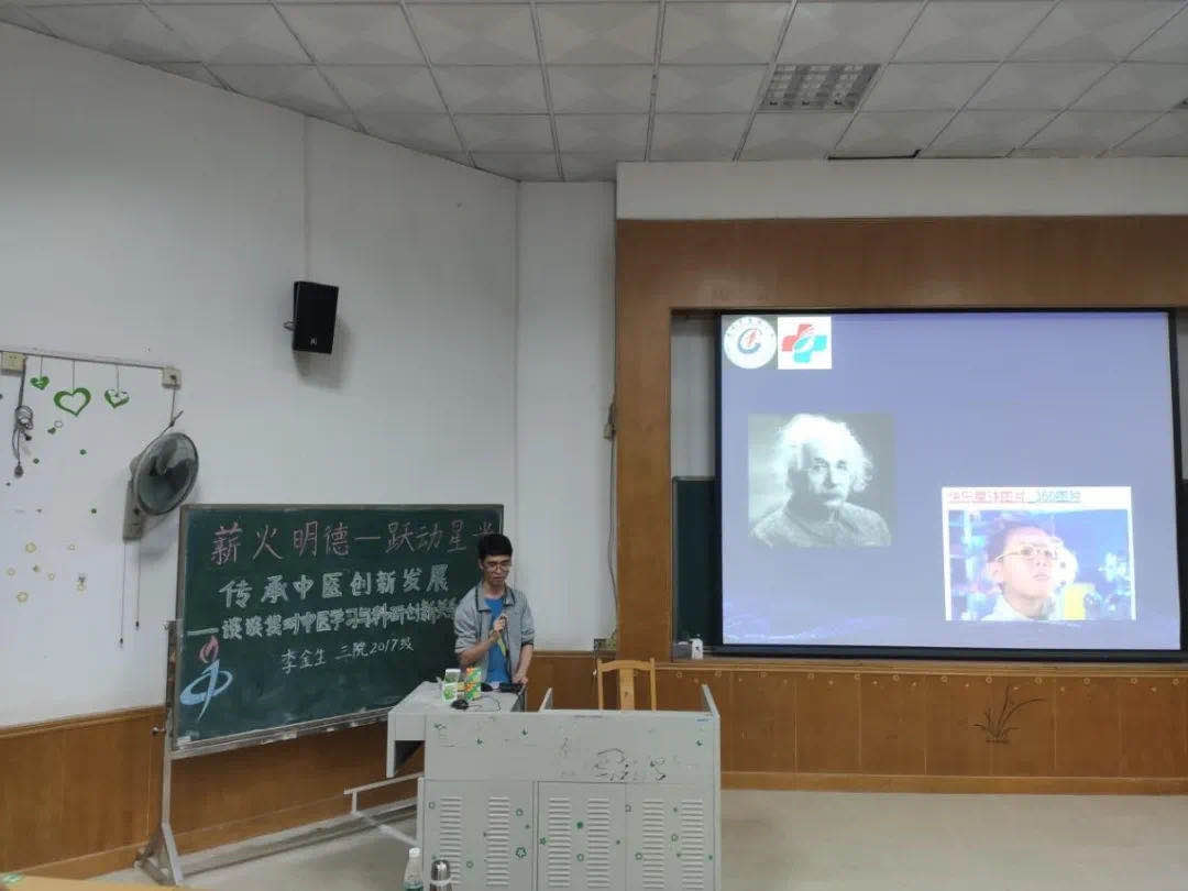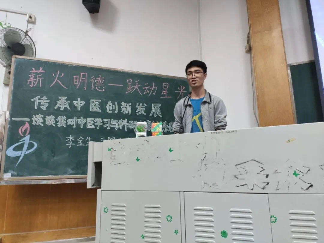 2020年 10月26日晚上7点我们邀请到了我院新南方奖学金提名奖获得者2017级李金生在办公楼第三大课室为我们讲授以“传承中医,创新发展-谈谈我对中医学习与科研创新关系的看法”为主题的讲座。