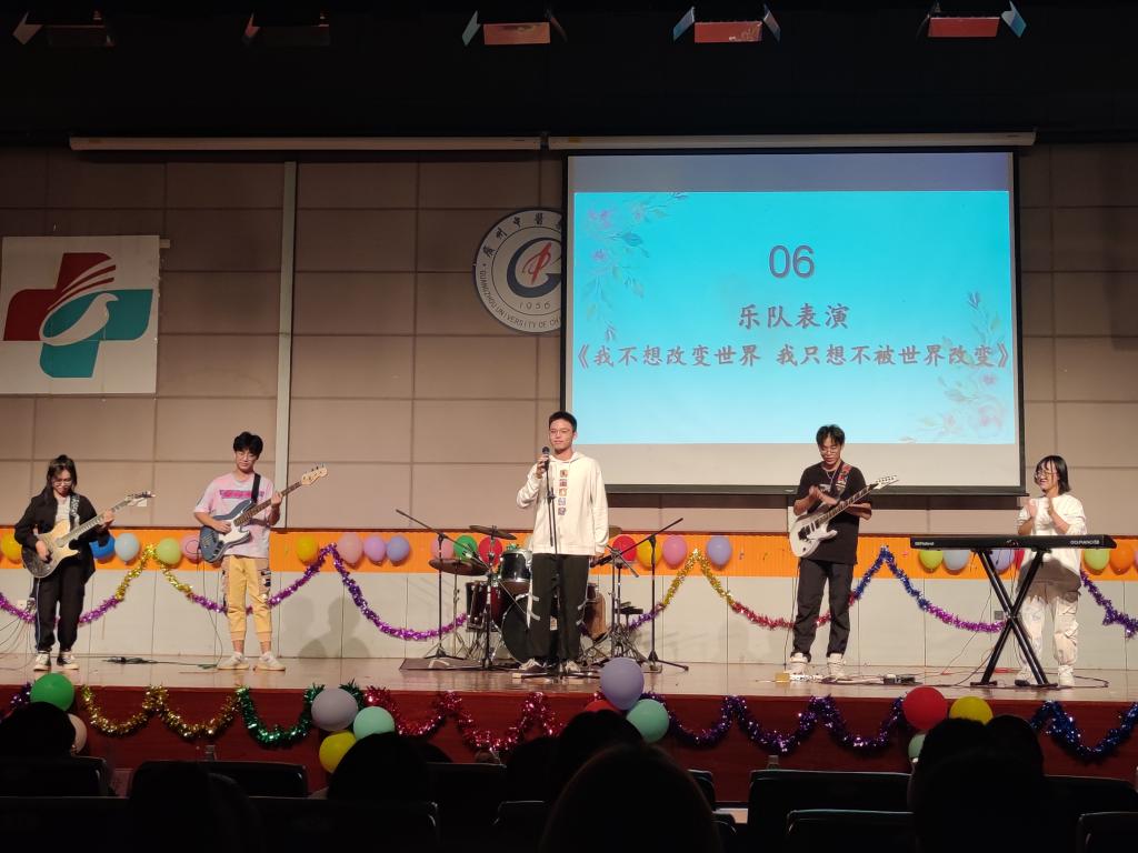 我不想改变 残酷的世界,我只想不被 这世界改变,我不管明天,梦想多遥远,未来在哪边。我只要,不遗憾的今天,乐队激情演唱,乐器无缝衔接,燃炸现场。