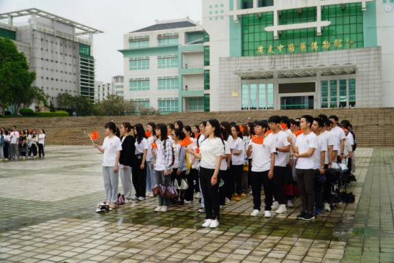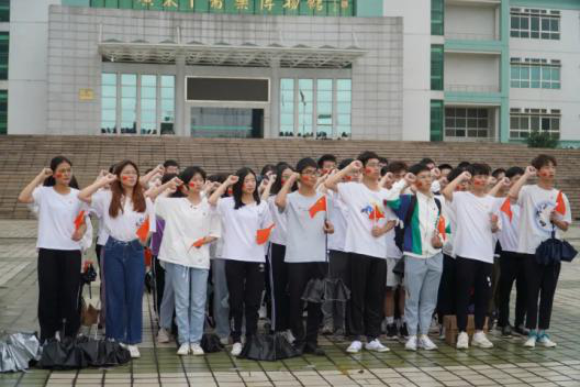 2019级陈量善带领同学们一起重温入团宣誓词,同学们铿锵有力的声音在广场回响,震撼人心。