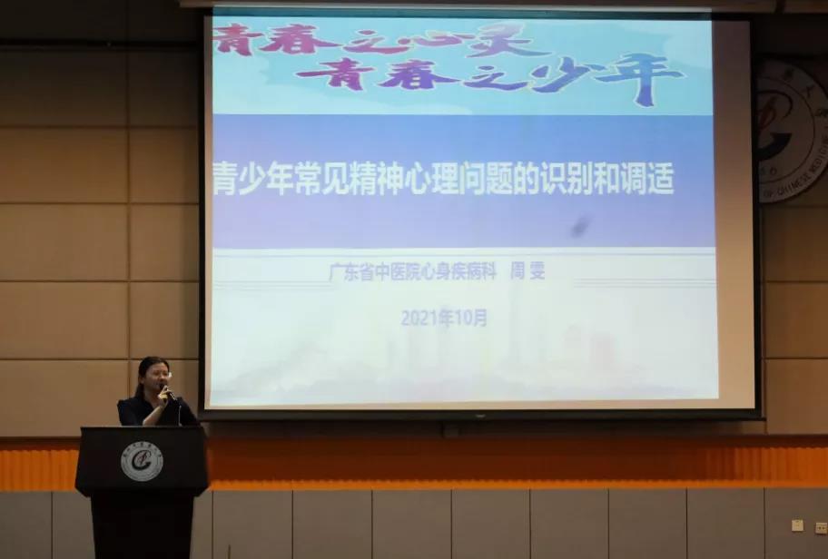为进一步将党史学习教育推向深入,切实为广大同学办实事、办好事,10月19日,伟德bv1946官网组织同学们参加学生心理健康培训讲座。 本次讲座特地邀请广东省中医院主治医师、国家中级心理治疗师和二级心理咨询师周雯老师,以《青少年常见精神心理问题的识别和调适》为题为同学们进行讲授。伟德bv1946官网全体本科生辅导员,20级和21级全体同学参加本次讲座。