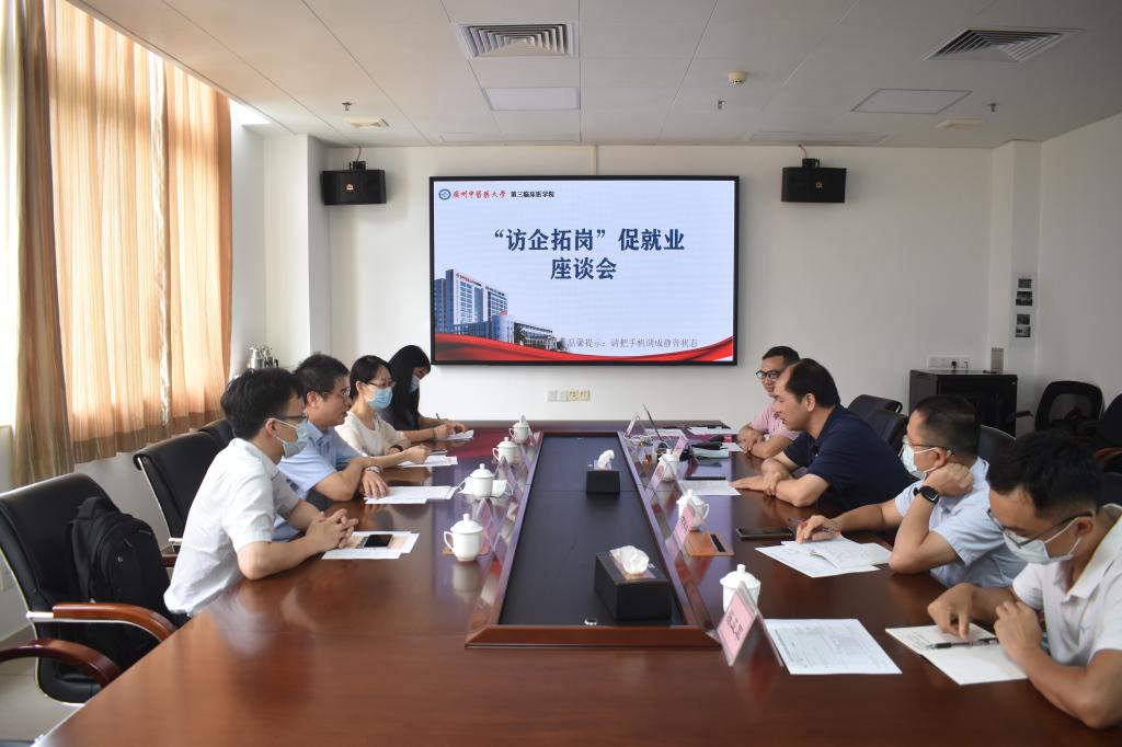 当天下午,宋盛青一行还走访了江门市新会区中医院。座谈会上,江门市新会区中医院副院长杨劲松介绍医院的基本情况及建设方向。宋盛青对双方多年来开展校企合作的成果表示肯定,希望双方围绕中医药发展战略和医学人才就业需求,继续深化人才培养和引才招聘,共同为拓宽医学生就业渠道探索新途径,助推毕业生更充分更高质量就业。