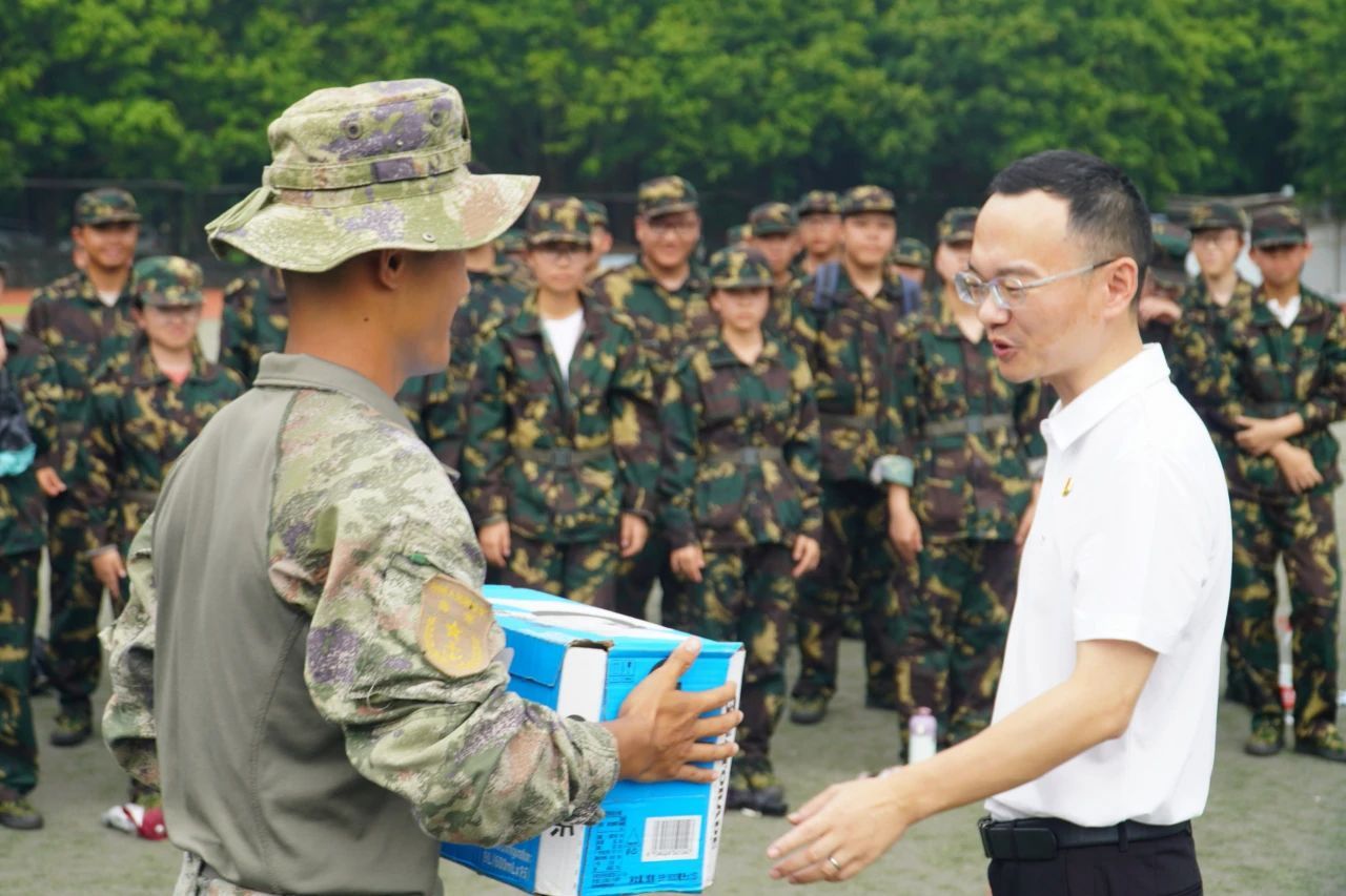 9月14日上午,伟德bv1946官网党委副书记罗向晗带队到学校田径场慰问带训教官,看望参训新生,并为参训新生准备茶饮和零食,为大家消暑解渴。