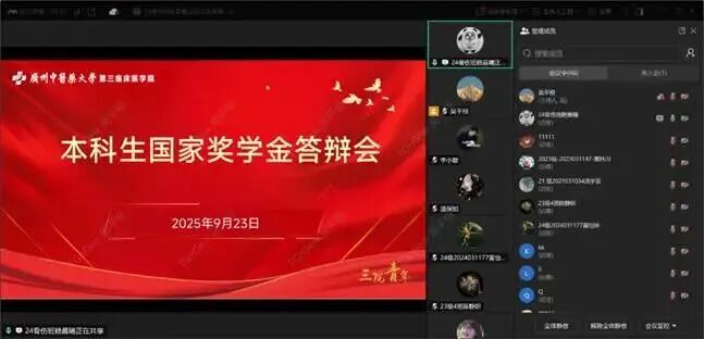 本次国家奖学金线上答辩评审会的成功举办,是三院坚持“以生为本”、深化“三全育人”的重要体现。它不仅为优秀学生提供了展示平台,更通过云端辐射,有效激发了广大学生的学习热情,营造了三院比学赶超的优良学风。三院将继续夯实人才培养基础,优化评优评先机制,助力学生全面发展,为培养高层次中医药人才不懈奋斗。