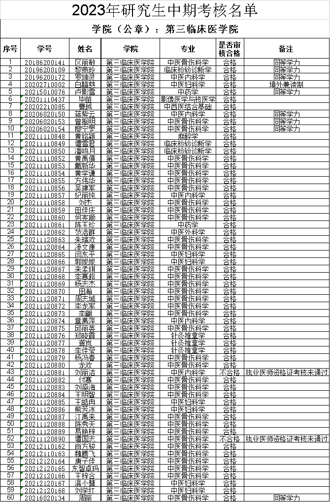 根据大学关于“开展2023年研究生中期考核的通知”(研生〔2023〕57号)以及《广州中医药大学研究生中期考核实施办法(试行)》(广中医研〔2015〕14号)要求,现对伟德bv1946官网2023年研究生中期考核情况进行公示,公示时间2023年6月28日至2023年7月2日。